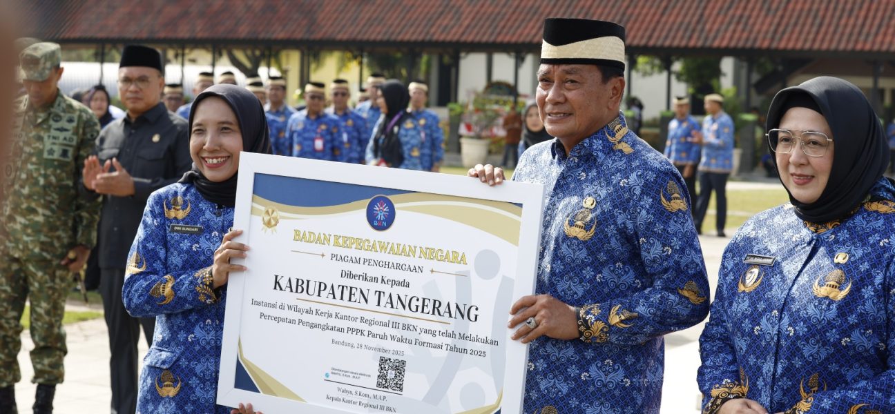 Bupati Tangerang Lantik 8.205 PPPK Paruh Waktu, Kanreg III BKN Serahkan Penghargaan atas Komitmen Penataan Non ASN
