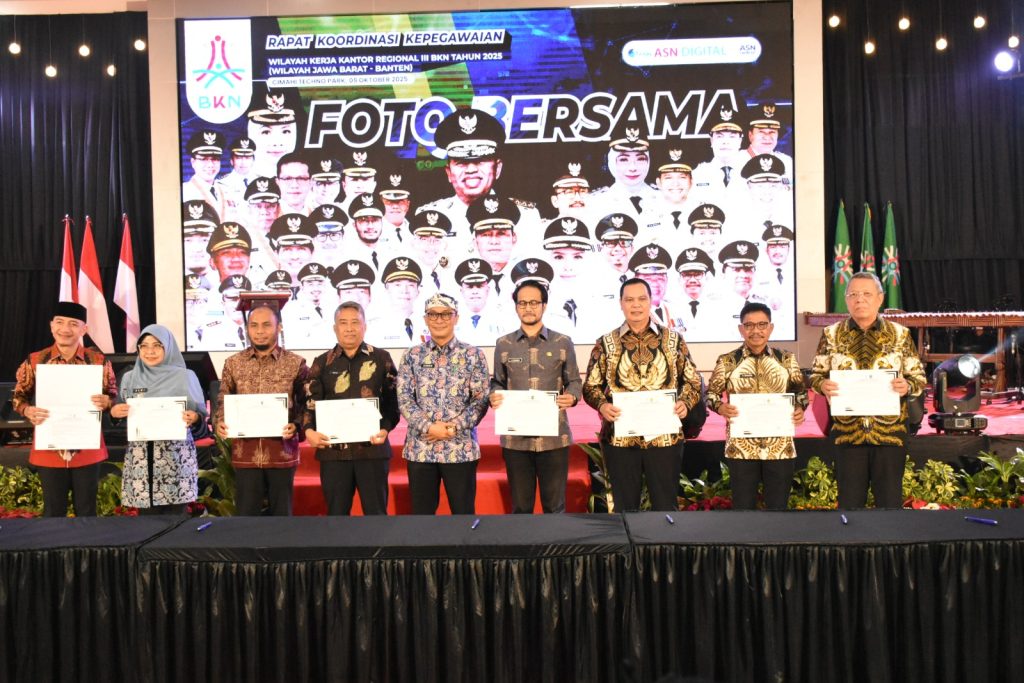 Cimahi- Dalam rangkaian kegiatan Rapat Koordinasi Kepegawaian Wilayah Kerja Kantor Regional III BKN Tahun 2025, Kantor Regional III Badan Kepegawaian Negara (BKN) Bandung memberikan Penghargaan Mitra Kerja Terbaik Tahun 2025 kepada 29 instansi dan lembaga mitra di wilayah Provinsi Jawa Barat dan Banten.