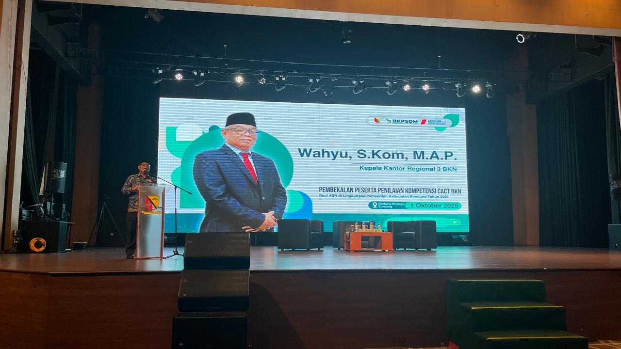 Bandung – Kantor Regional III BKN Bandung hadir dalam kegiatan Pembekalan Penilaian Potensi dan Kompetensi ASN yang diselenggarakan Pemerintah Kabupaten Bandung pada hari Rabu (01/10/25). Kehadiran ini menjadi wujud sinergi dalam mendorong penerapan sistem merit dan manajemen talenta, agar aparatur sipil negara (ASN) semakin siap menghadapi dinamika birokrasi modern.